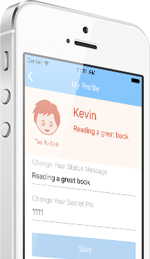 Children will love the fun features in Kids in Touch. They can design their own icon to show their moods or silly nature.