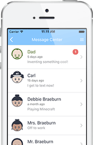 Parents decide whom their family interacts with on Kids In Touch. You invite other families to join yours. No one else can communicate with your children. You can even decide which members of another family can text with your child.